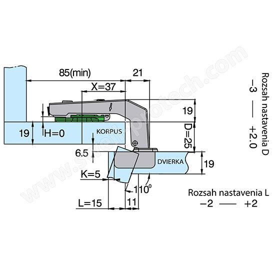 Záves Click-on uhol 090° slepý uhol /DTC