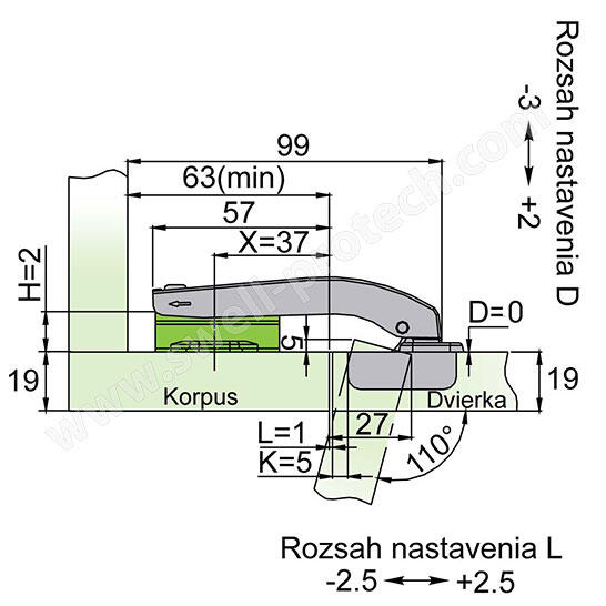 - otvárací uhol 110°