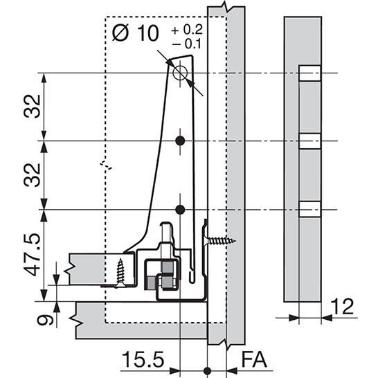 Montážne miery pre boky(vnútorná stena korpusu k vonkajšej hrane dna): 37.5 mm