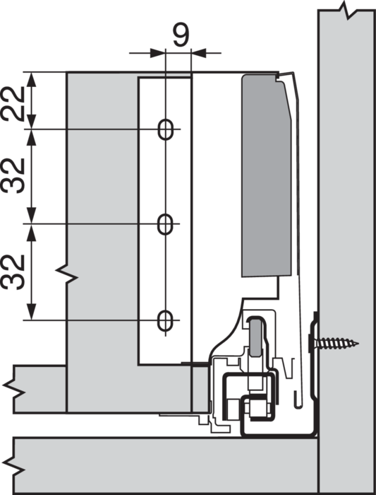 > spojenie bočnice so zadnou stenou: naklapnutím (oceľová zadná stena alebo držiak zadnej drevenej steny)