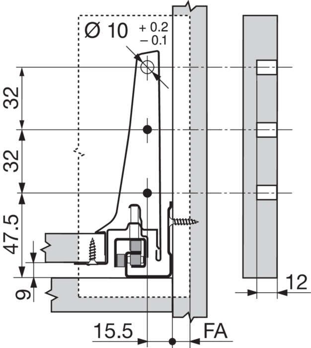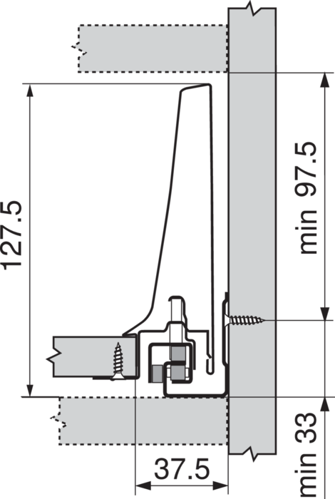 > montážne miery pre bočnice (vnútorná stena korpusu k vonkajšej hrane dna): 37.5 mm