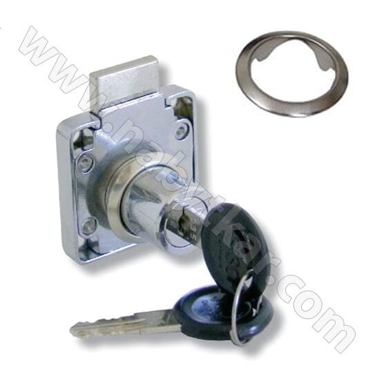 Zámok štvorcový - Zámok pre kancelárský nábytok - Uzamykacia západka je z 2,5mm poniklovanej ocele, vysunie se na 9mm - Klúč je možné otočit o 180° a vytiahnúť ako v uzamknutej tak v odomknutej polohe - Teleso je vyrobené zo zliatiny zinku s povrchovou úpravou leštený chróm - 2x kľúč s plastovým krytom