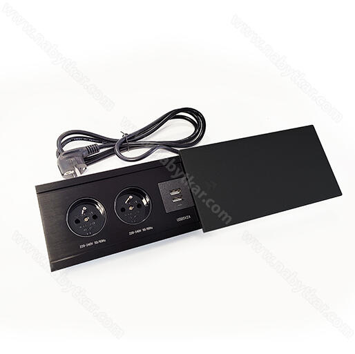 MODUL-3-USB  jeurčený na inštaláciu priamo do stolov, dosiek kancelárskeho a kuchynskéhonábytku. Konštrukcia zariadenia zahŕňa stabilné, pevné puzdro namontovanév doske stola a pohyblivý posuvný kryt s 2 napájacími zásuvkami s uzemnením230V a 2 USB zásuvkami pre nabíjanie mobilných zariadení. Zariadenie jemožné inštalovať do pracovných dosiek s minimálnou výškou (hrúbkou) 25mm. Kryt je vyrobený z hliníka (strieborná) alebo čiernej (čierna).