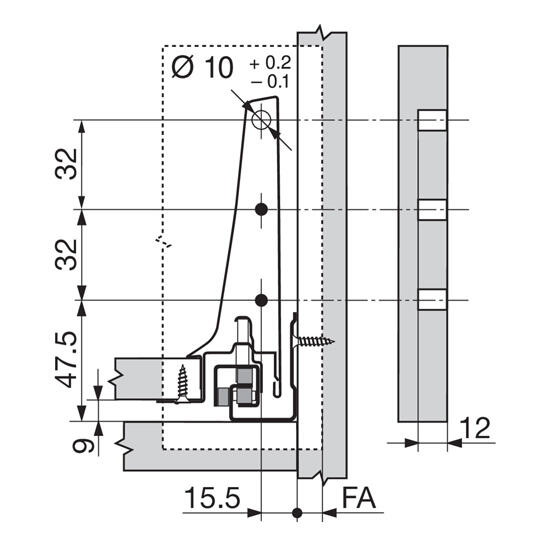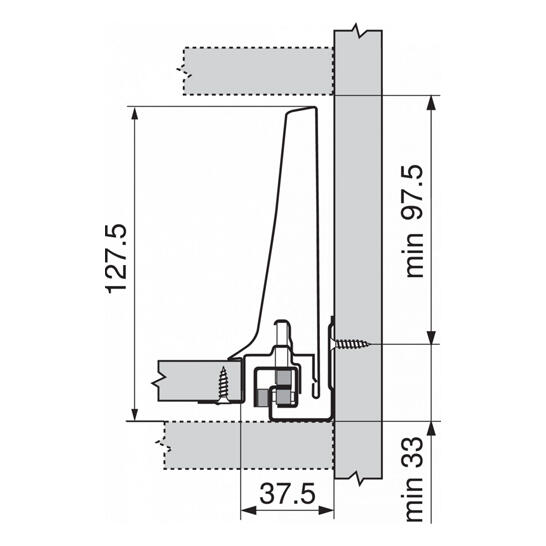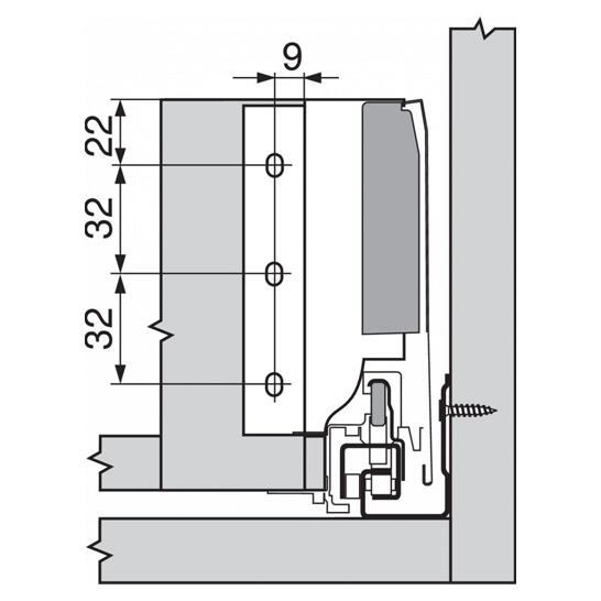 > typ výsuvu: boky TANDEMBOX pre TANDEMBOX intivo/antaro > výška bokov: K (115 mm) > materiál: oceľ > design: A > menovitá dĺžka: 450 mm > spojenie boku s čelom: ZSF upevnenie čela na zarazenie s dorazovým tlmením > spojenie boku s chrbtom: naklapnutím (oceľový chrbát alebo držiak dreveného chrbta) > dĺžka hornej hrany boku (vnútorný rozmer zásuvky): 440 mm > montážne miery pre boky(vnútorná stena korpusu k vonkajšej hrane dna): 37.5 mm > nastavenie výšky: +/- 2 mm > upevnenie dna na boku: zaklesnutím alebo priskrutkovaním > hrúbka dna: 16 mm