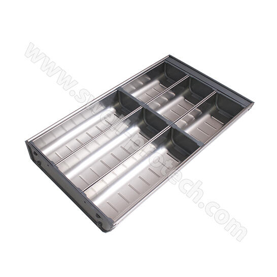 -Misky a pozdĺžne deliace prvky z vysokoušľachtilej ocele s kombinované s  plastovými dielcami