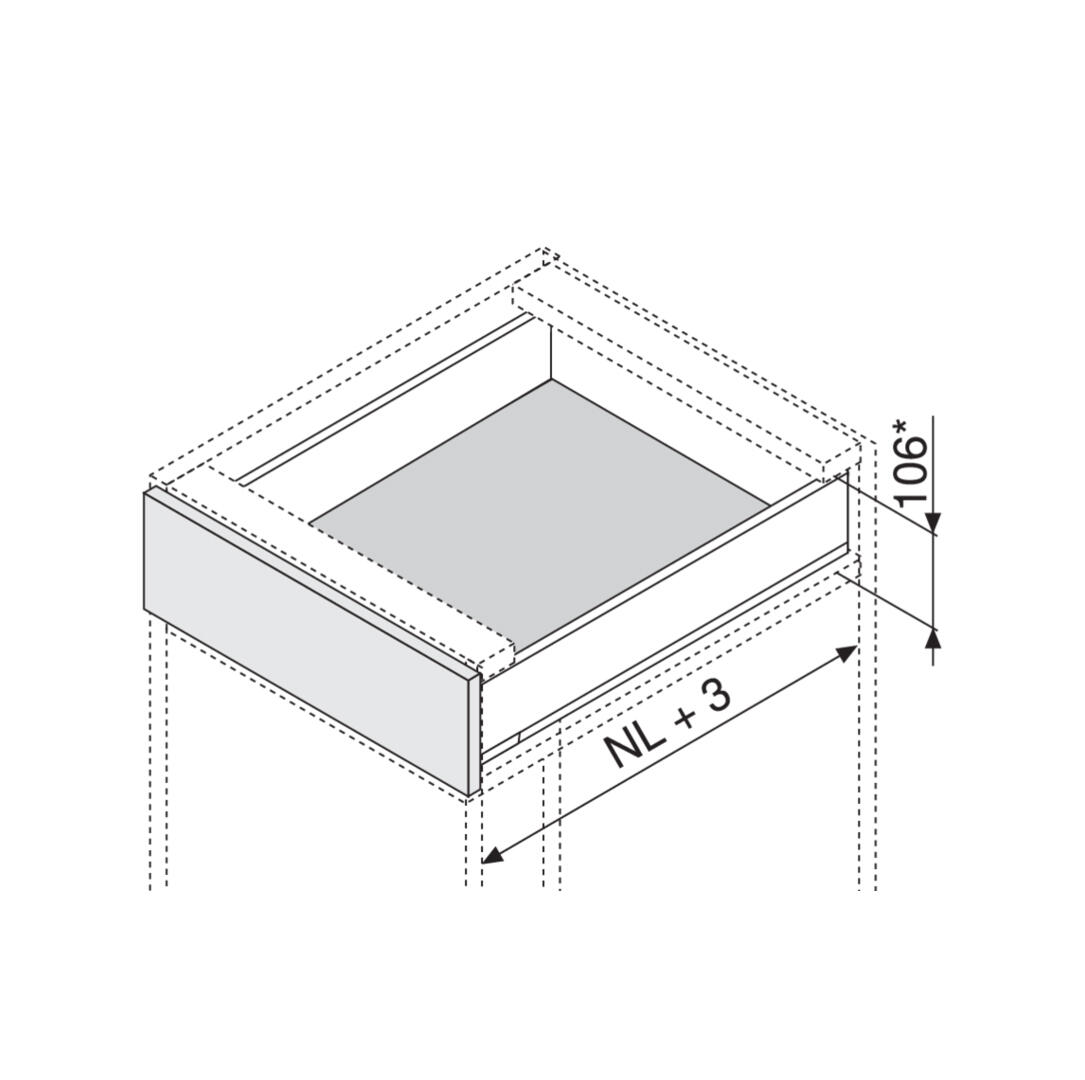 > typ výsuvu: boky LEGRABOX > výška bokov: M (90,5 mm) > riešenie designu: LEGRABOX pure > materiál: oceľ > design: hladký > menovitá dĺžka: 550 mm > spojenie boku s čelom: čelné kovanie > spojenie boku s chrbtom: naklapnutím (oceľový chrbát alebo držiak dreveného chrbta) > dĺžka hornej hrany boku (vnútorný rozmer zásuvky): 539.8 mm > montážne miery pre boky (vnútorná stena korpusu k vonkajšej hrane dna): 17 mm > nastavenie výšky: ano > upevnenie dna na boku: zaklesnutím alebo priskrutkovaním > hrúbka dna: 16 mm