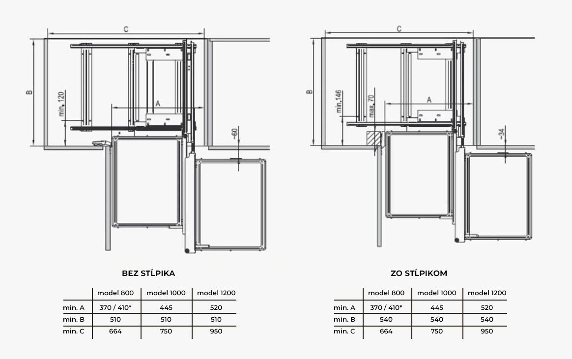Min. šírka skrinky: 664 mm