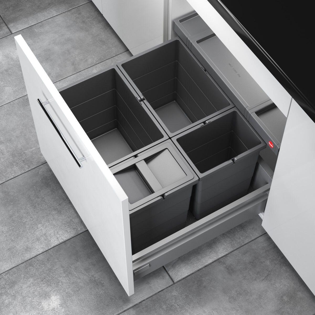 4 vnútorné nádoby (2x 18 l + 2 x 8; výška nádoby 295 mm) vr. vnútorné veko koša