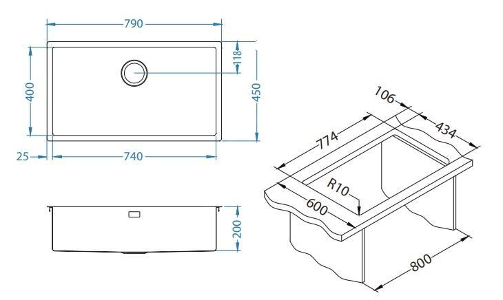 • rozmer vaničky 740 x 400 x 200 mm