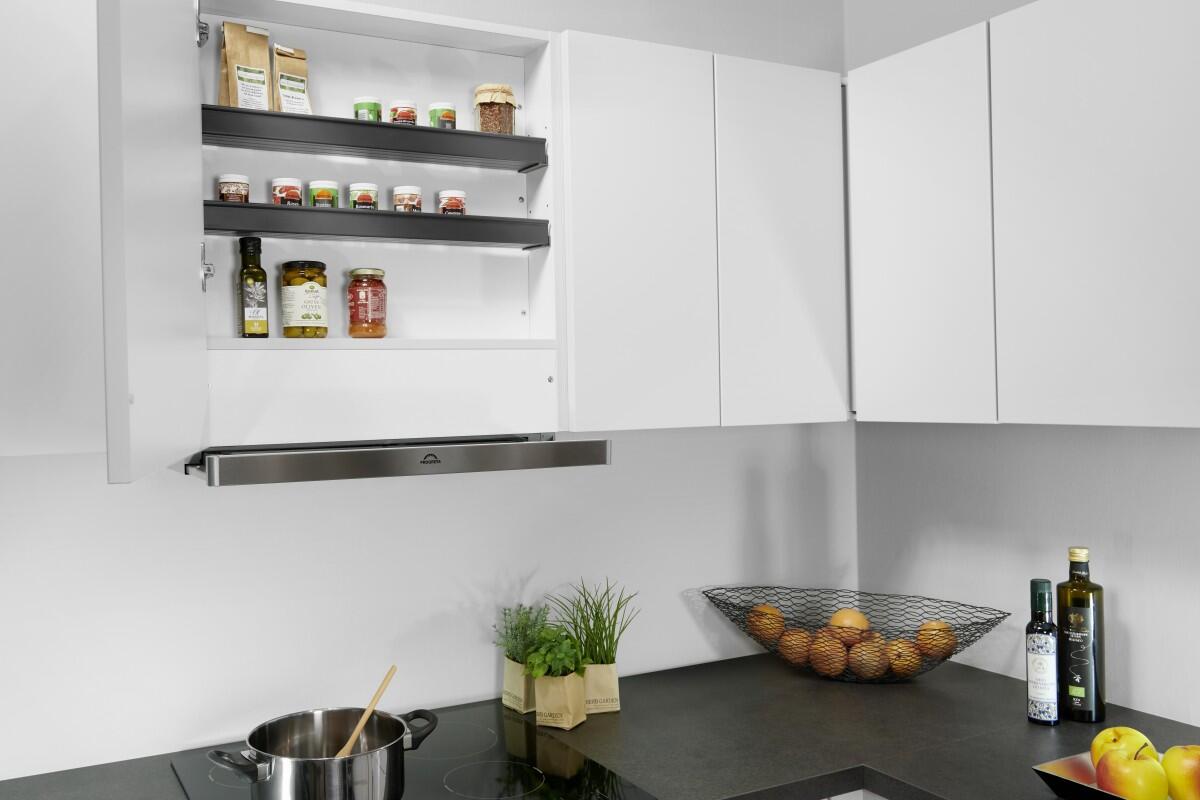 Optimálne využitie úložného priestoru vo všetkých plochých skriniach odsávača pár.