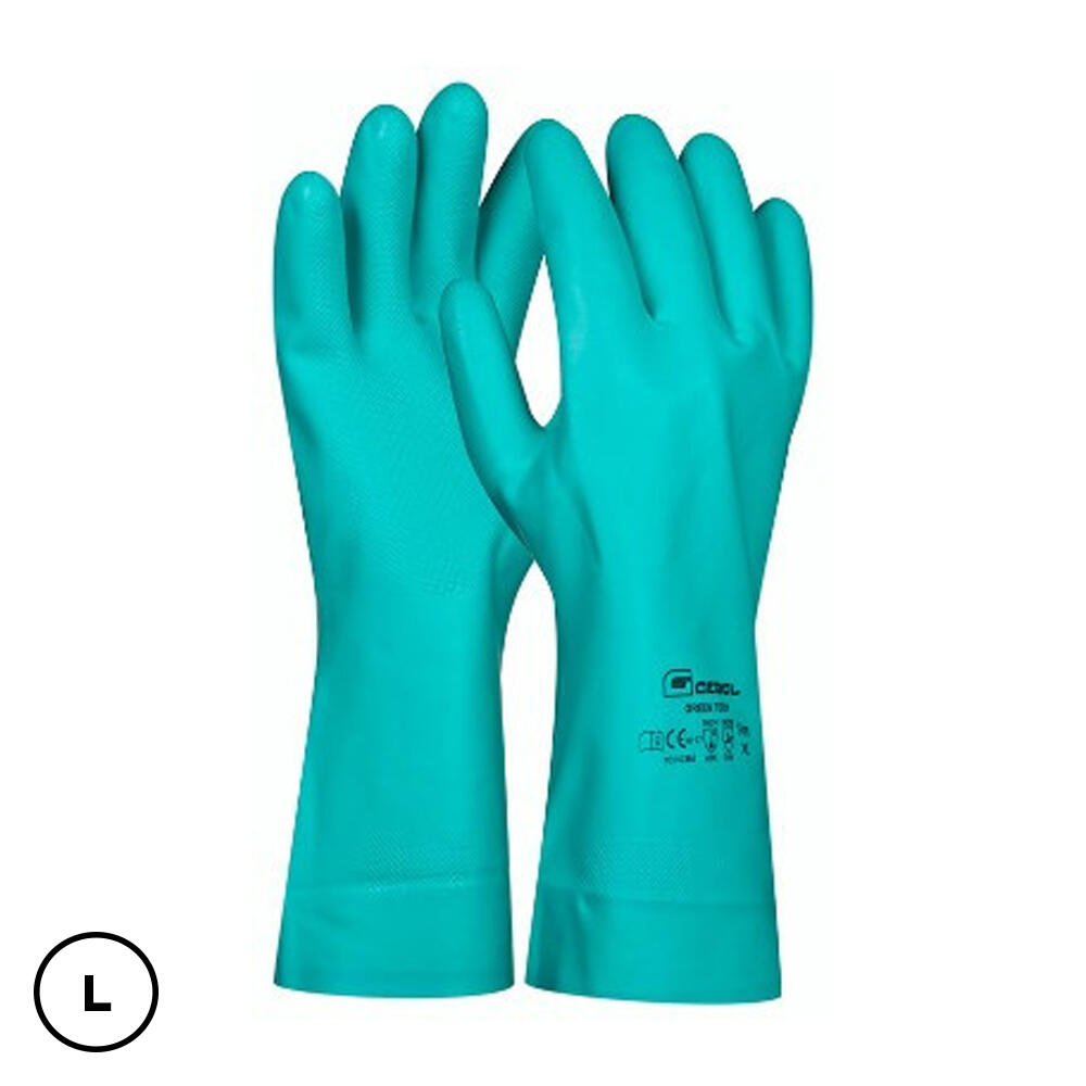 * RUKAVICE ZELENÉ TECH * Gebol Gloves Green Tech vyrobený z bavlny a nitrilu * velurové * dobrá odolnost vůči kyselinám, zásadám, tukům a olejům * vysoká odolnost proti roztržení