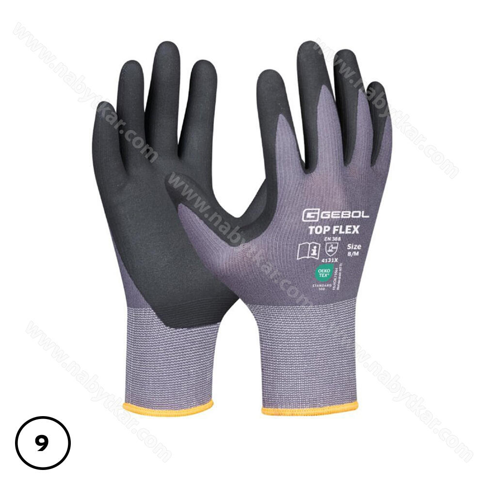 Rukavice Top Flex č.9 - 709534-09 Bezšvové, ľahké montážne rukavice vyrobené z nylonu a elastanu | odpudzujúca vlhkosť | optimálna obratnosť | vysoký komfort nosenia