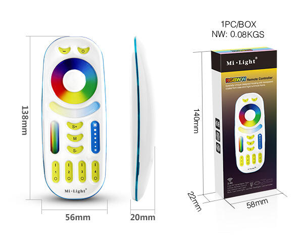 •Technológia bezdrôtového prenosu 2,4 G RF • Môže ovládať produkty série MiBoxer / Mi-Light2.4G • Kontrolná vzdialenosť: 30 m • 16 miliónov farieb na výber • Jas, farebná teplota a nastaviteľná sýtoť
