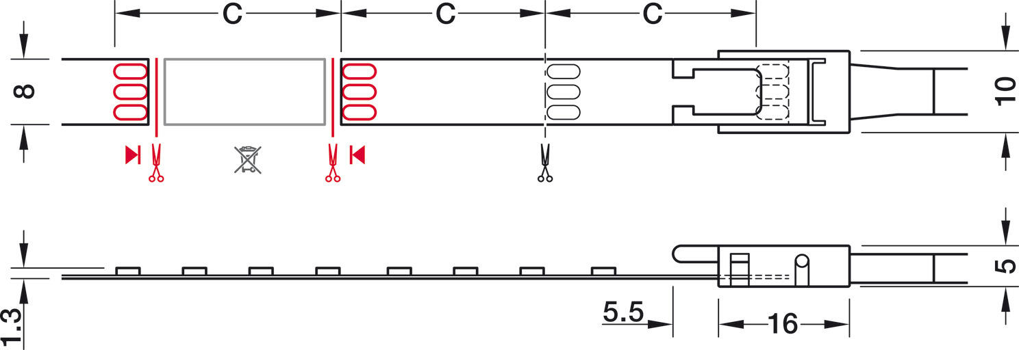 Kábel je potrebné objednať samostatne. Nastavenie farby prostredníctvom 6-cestného rozbočovača Häfele Connect Mesh s adaptérom tunable white a diaľkovým ovládačom alebo smartfónom. Objednávajú sa samostatne. Je potrebná inštalácia bezplatnej aplikácie Häfele Connect Mesh.Odporúčame hliníkové profily pre atraktívny dizajn, rozptýlené vyžarovanie svetla, mechanickú ochranu a odvod tepla.