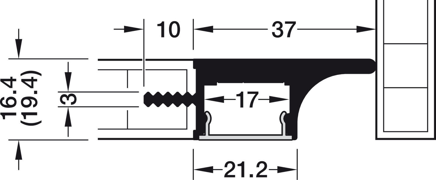 Kombinácia úchytkového profilu a pracovného osvetlenia Vhodné pre exkluzívne lineárne šošovky osvetlenia pracovnej plochy pri používaní osvetľovacej LED pásky širokej 8 mm Dĺžka predĺženia čapu: 2 500 mm Aplikácia: Pre predné panely bez úchytiek Vybavenie: Svetelný otvor smerom dole Materiál: Profil – hliník Upozornenie pri objednaní: Difúzor objednajte samostatne Obsah balenia: 1 hliníkový profil Doplnkové informácie: Pre osvetľovacie LED pásky do šírky 10 mm; s lineárnymi šošovkami používajte iba 8 mm široké Loox5 LED pásky; lepená plocha musí byť pred lepením LED pásky úplne čistá, odmastená a bez prachu